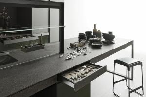 In the inclined version, the Genius Loci drawer can be made in different materials and finishes. From inlaid and carved woods to sculpted stone and precious metals, Valcucine recovers and reinterprets the preciousness of ancient crafts, restoring dignity and beauty to treasures of memory that risk being lost.